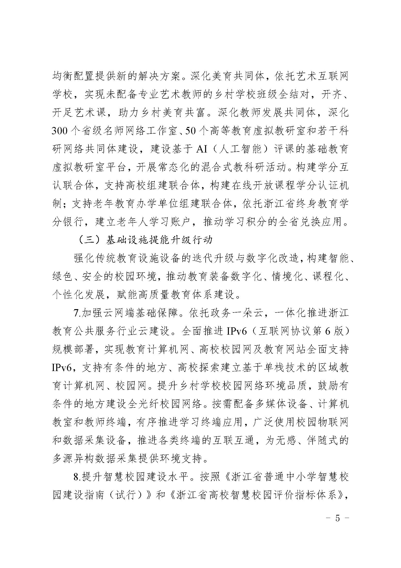 近日,浙江省教育廳官網(wǎng)發(fā)布關(guān)于印發(fā)《浙江省數字教育高質(zhì)量發(fā)展行動(dòng)計劃(2024-2027年)》的通知,在高質(zhì)量發(fā)展建設共同富裕示范區背景下,以立德樹(shù)人為根本任務(wù),堅持“以教育信息化驅動(dòng)引領(lǐng)教育現代化”的發(fā)展理念,充分發(fā)揮數字教育推進(jìn)教育現代化的內變量、快變量、強變量作用,統籌做好技術(shù)支撐、數字賦能、應用深化、公共服務(wù)、安全保障,構建數字教育基礎設施、數字教育資源應用、教育數據開(kāi)放服務(wù)、數字教育協(xié)同創(chuàng )新、教育網(wǎng)絡(luò )安全保障和數字教育發(fā)展制度等六大體系完善、結構合理、供給充分的高質(zhì)量數字教育公共服務(wù)體系,支持公平包容、更有質(zhì)量、適合人人、綠色發(fā)展、開(kāi)放合作的數字教育生態(tài)。到2027年,形成在國內處于領(lǐng)先水平、在國際具有影響力的數字教育高地,助推中國式現代化教育示范省建設。
